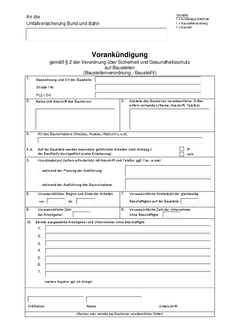 Vorankündigung gemäß §2 Baustellenverordnung