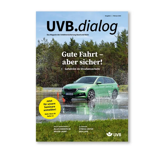 Das Magazin UVB.dialog informiert Beschäftigte regelmäßig über Themen wie Arbeits- und Gesundheitsschutz, Präventionsmaßnahmen und neue Impulse für den Arbeitsalltag.